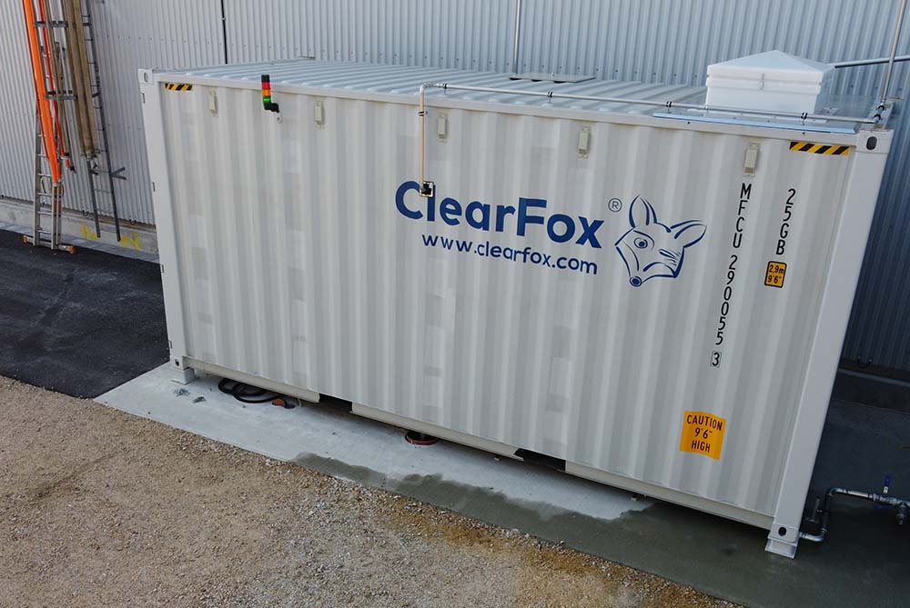 For this project, the ClearFox® team designed a dissolved air flotation system in a 20-foot HC ISO Sea container. After screening, the wastewater flows into a buffer tank to compensate inflow peaks. The plant then continuously feeds the wastewater into the ClearFox® DAF. Via a polymer station, the plant mixes flocculants into the wastewater to bind all dissolved and non-dissolved substances. Highly fine bubbles cause the flocculated substances to rise and thus separate them as sludge from the clear water.