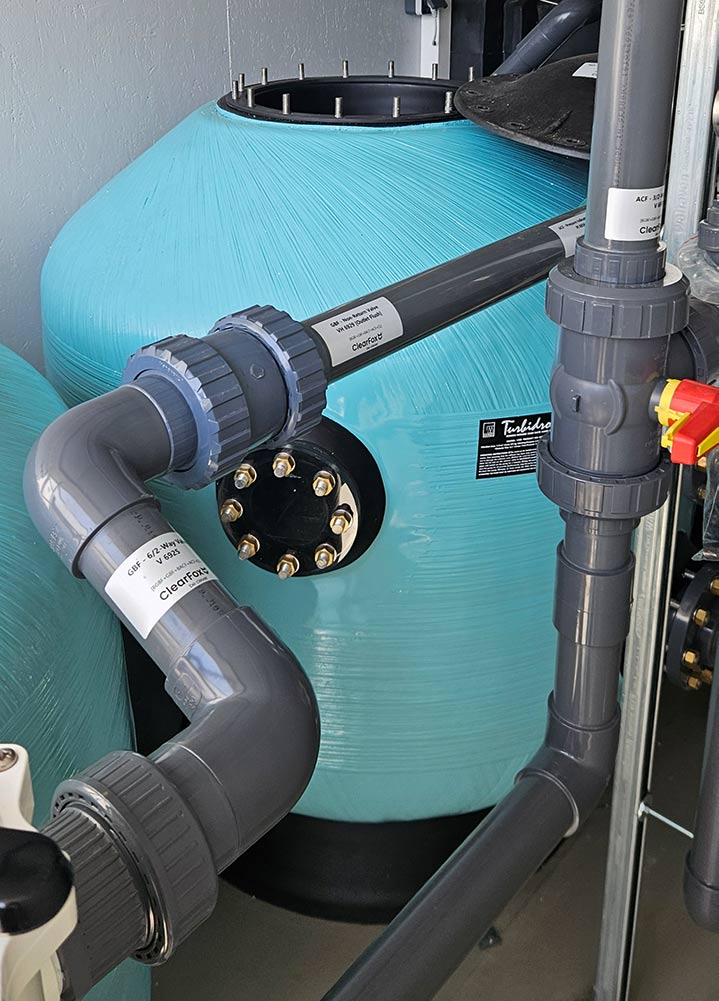 Another key factor was the installation environment: The treatment system was to be placed outside the main building, in a large PVC storage tent. This required a compact and enclosed design, winter-proof configuration, clear routing of pipelines, and a well-thought-out sludge handling concept. Operational security and remote support were also important, as the plant operators were not wastewater specialists.