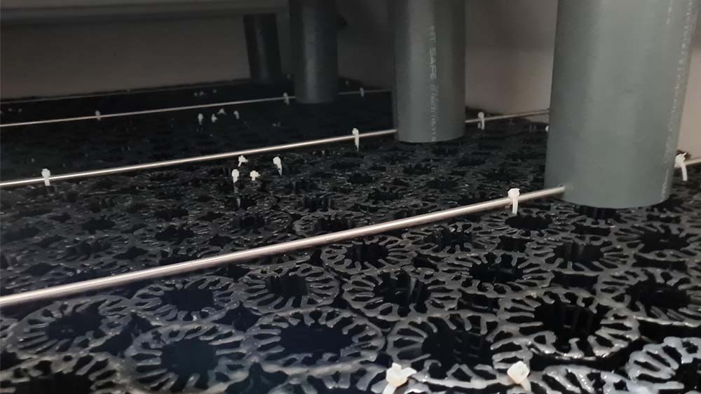 The ClearFox® FBBR process is a highly efficient solution for biological wastewater treatment. The cascaded fixed bed material consists of a growth material with a specific surface area. As a result, the microorganisms grow quickly so that the treatment process achieves outstanding purification performance. The screen screw removes the first coarse solids that must not enter the treatment plant. The downstream lamella clarifier separates the sludge produced during treatment from the clear water so that it can be discharged into the environment without any further treatment step.