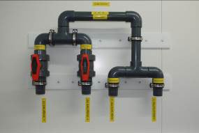 The industrial wastewater treatment plant must run fully automatically with a simple to operate, rugged control unit. The plant must react flexibly to variable water inlets, the max. daily water volume is 180 m³.