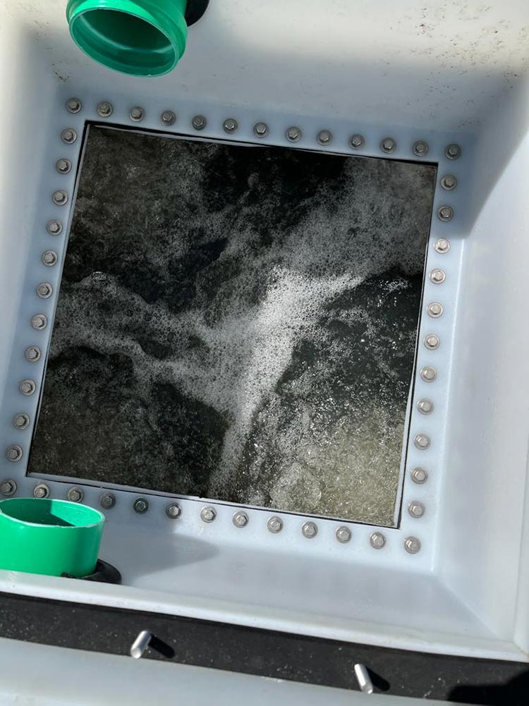 To achieve the required discharge values, PPU Umwelttechnik GmbH planned two 20-foot fixed-bed containers connected in parallel. The wastewater passes through three cascades in which the growth area of the fixed bed material increases from stage to stage. These provide increasingly thorough wastewater treatment. Following the biological treatment, two lamella clarifiers separate the sludge and the partially flushed biological lawn from the clear water.